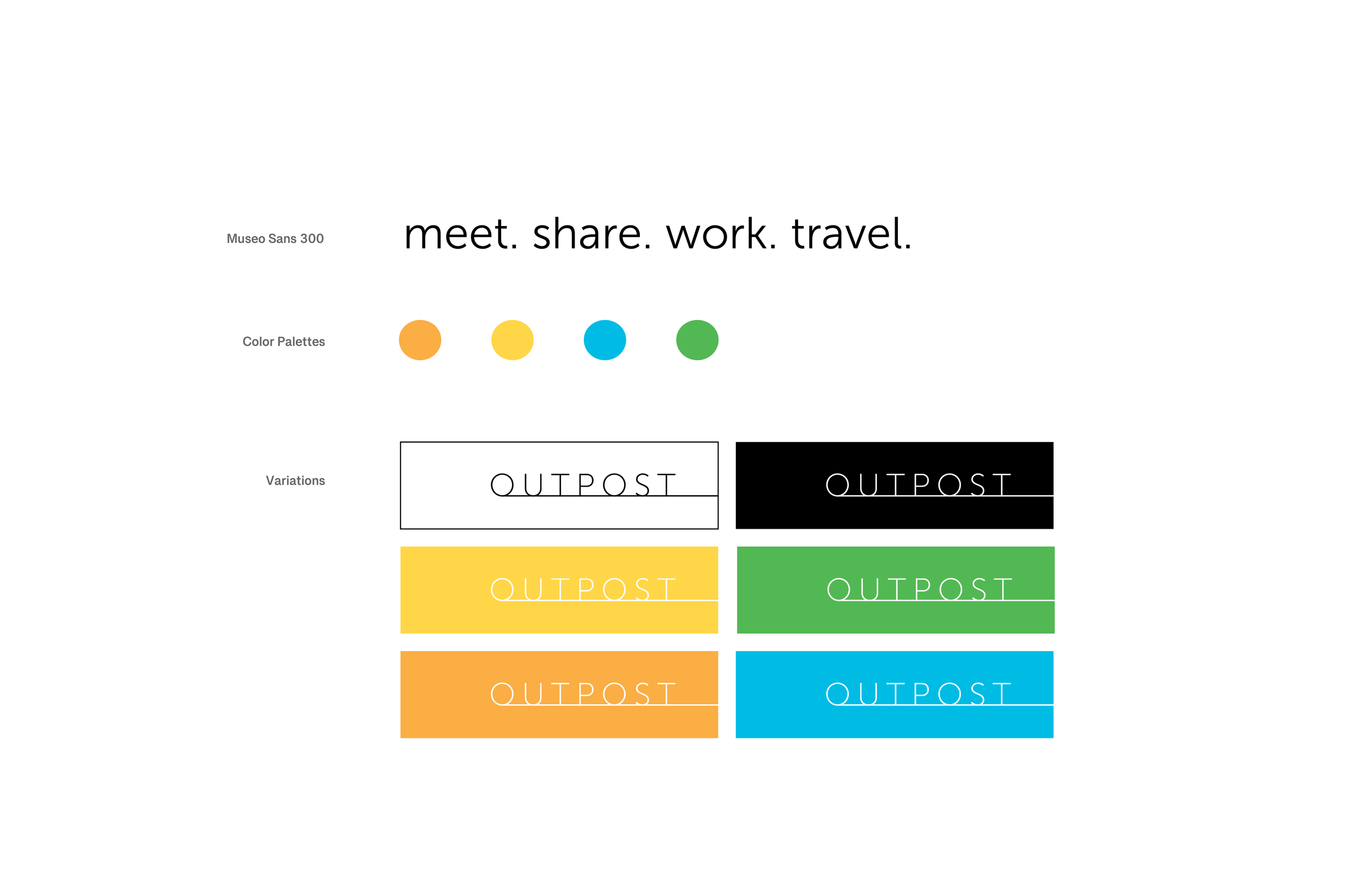This project changes the visual identity of Outpost, which provides co-living and co-working places for remote workers to meet, work, travel, and share ideas together. One of Outpost's core values is to develop connections between remote workers and assist the whole remote worker community. This value inspired the visual identity and the merchandise.